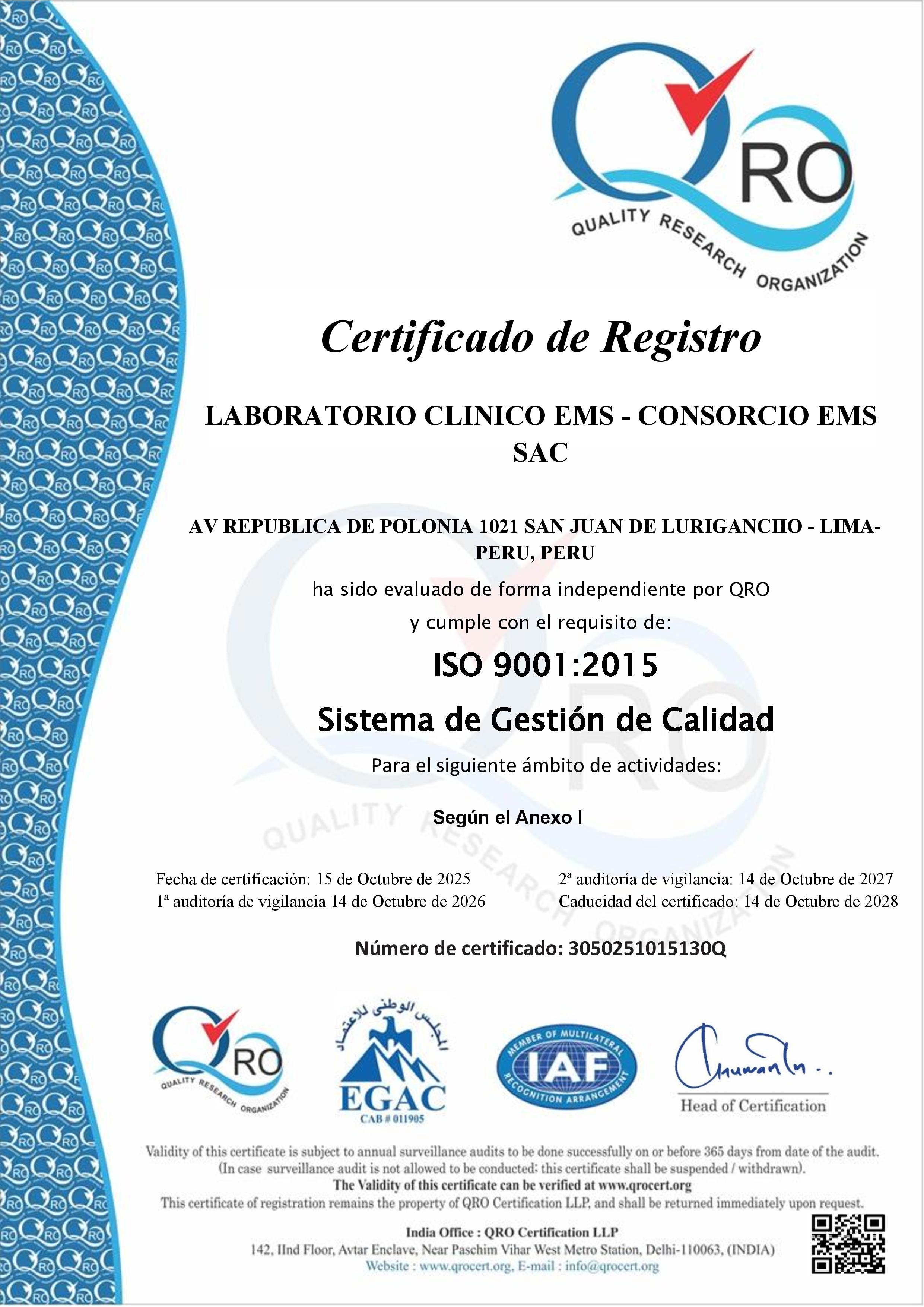Nuestro Laboratorio Clínico está respaldado por certificaciones de alta calidad y cumple con los más rigurosos estándares, garantizando precisión, confiabilidad y excelencia en cada uno de nuestros servicios.
